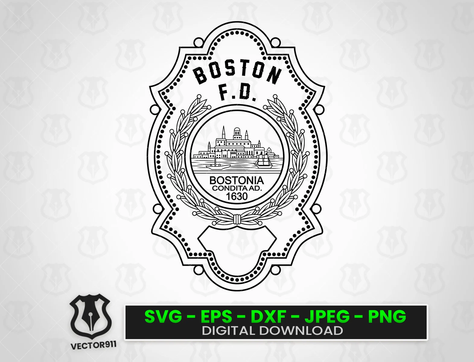 Our Boston Massachusetts Fire Department Firefighter Badge SVG vector files are crafted to be compatible with today’s most popular CNC, Laser, and Vinyl Cutting Applications. The included SVG, EPS, DXF, and PNG formats allow for customization of products that celebrate the courage and heritage of Boston’s firefighting community.