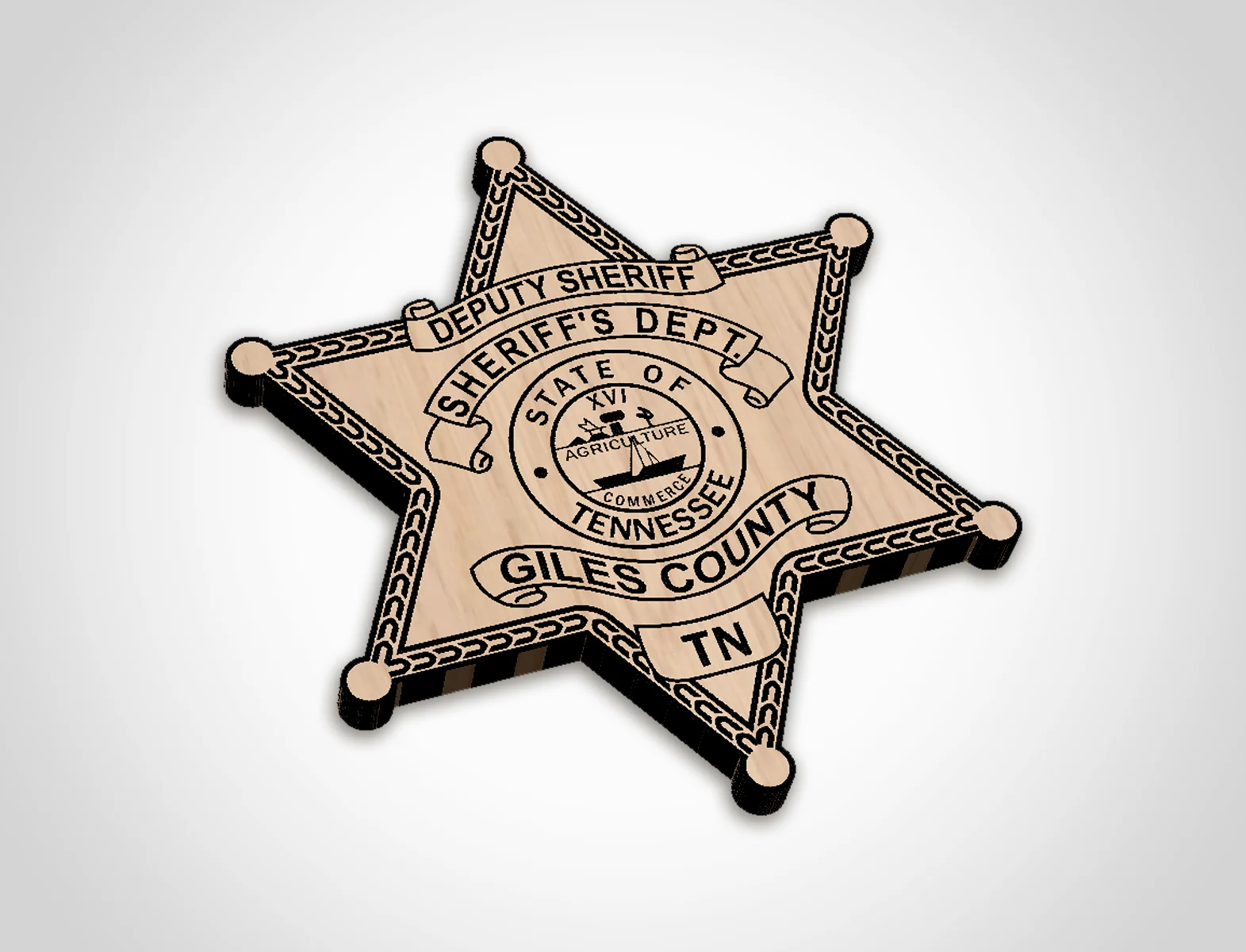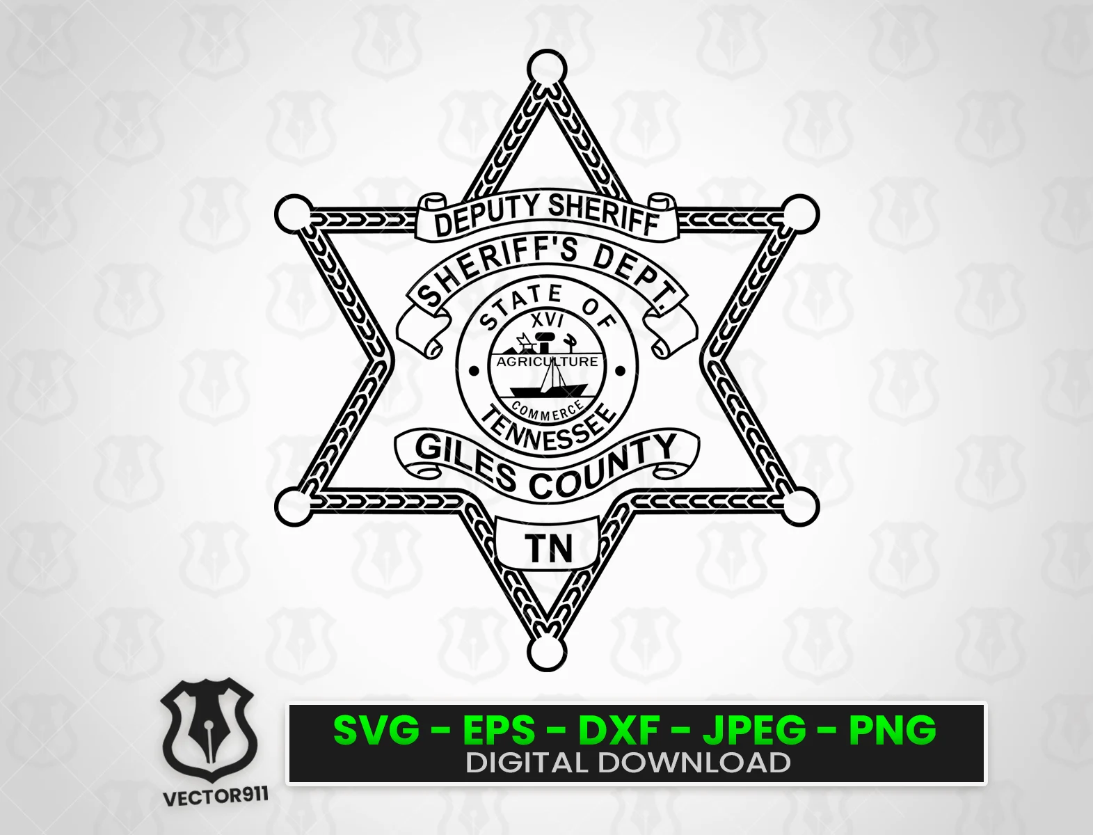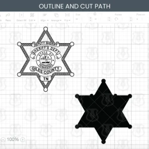 Our Giles County Tennessee Sheriff’s Department Deputy Badge SVG vector files are crafted to be compatible with today’s most popular CNC, Laser, and Vinyl Cutting Applications. The included SVG, EPS, DXF, and PNG formats allow for customization of products that celebrate the deputies of the Giles County Sheriff’s Department and their commitment to protecting the citizens they serve.