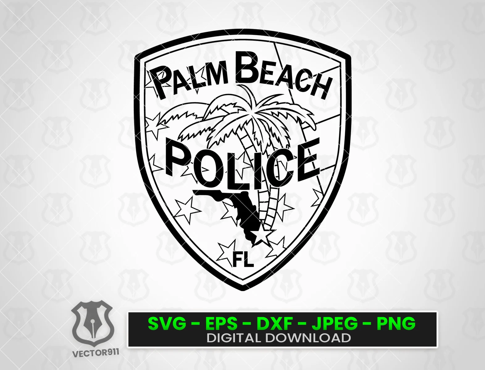 Our Palm Beach Florida Police Department Patch SVG vector files are crafted to be compatible with today’s most popular CNC, Laser, and Vinyl Cutting Applications. The included SVG, EPS, DXF, and PNG formats allow for customization of products that honor the officers of the Palm Beach FL Police Department and their commitment to serving and protecting the community.